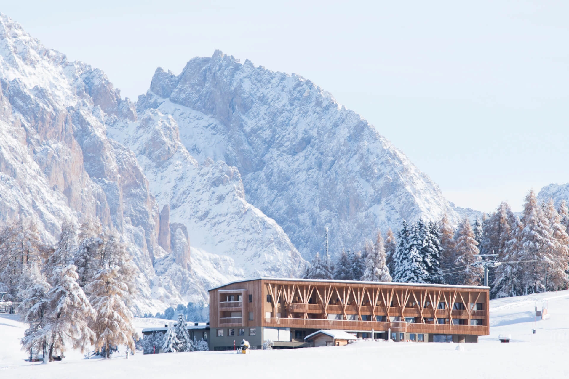 Icaro Hotel (Castelrotto, Alpe di Siusi) è una Wunderkammer pensata e progettata per meravigliare i suoi ospiti, grazie ai preziosi oggetti d’arte incastonati nelle pareti e alle camere a forma di telescopio realizzate dall’ambizioso progetto architettonico di ampliamento dei MoDus Architects.